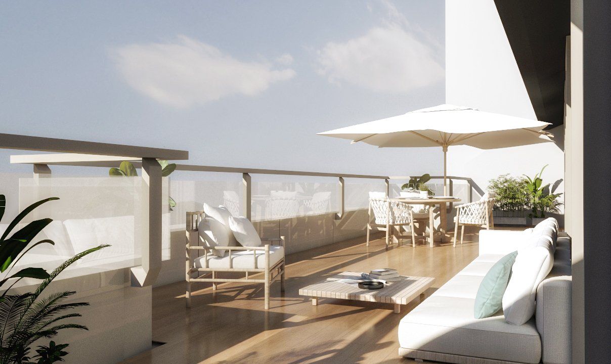 Las viviendas en su mayoría de 1 y 2 dormitorios, cuentan con planta baja, más 4 alturas y unos preciosos áticos con amplias y soleadas terrazas. Sus amplios ventanales y equilibradas distribuciones, para el máximo aprovechamiento de la luz y el espacio, harán de las viviendas espacios cálidos, alegres y confortables.