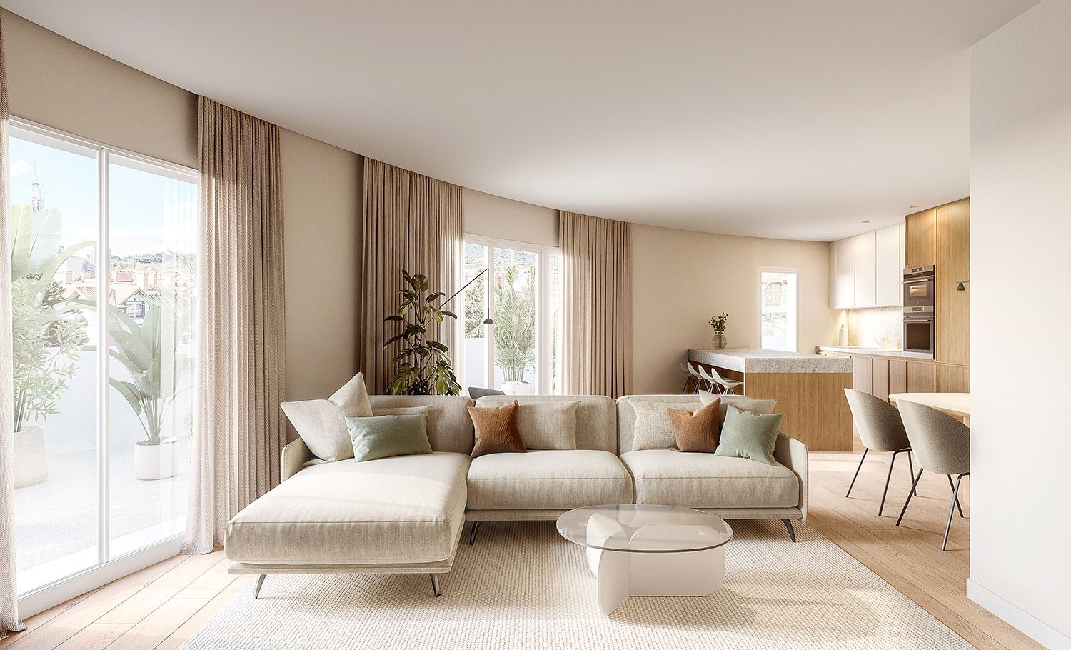 Los amplios ventanales y equilibradas distribuciones, para el máximo aprovechamiento de la luz y el espacio, harán de las viviendas espacios cálidos, alegres y confortables.